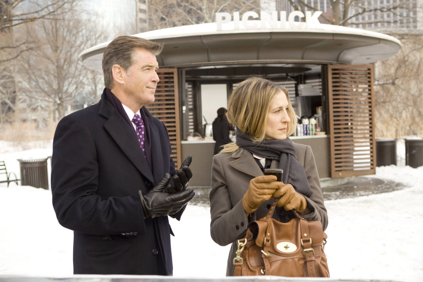 I Don’t Know How She Does It is a film so into the women-empowerment shtick that it undermines its whole message. Forest for the trees. *sigh* The problem starts with the introductory scenes. 1:14 a.m. and workaholic Kate (Sarah Jessica Parker) is in a cab coming home from a business trip. But her daughter’s school has a bake sale the next day and she has nothing to bring, oh no! Then, as is standard for the genre, we take a small problem and we embellish as much as we think we can get away with: Kate would gladly stay up late baking something, but “all the stores that sell baking supplies are closed at this hour,” so naturally, she finds an all-night pie and pyrex merchant. Oh. Say, what is this magical land in which grocery stores are closed past midnight, but bakers are up? “Boston” you say. Hmm. Naturally, the pie “has to look handmade” so Kate can compete with the Joneses. Now you’re just making up controversy. Sure, it happens, but gimme a break. Kate ends up putting the pie in an ill-fitting container and fudging. Yeah, I get peer pressure along these lines. You know what bugs me? Kate never asks husband Richard (Greg Kinnear) to get involved. All it would have taken is a single phone call. What? He can’t figure out homemade dessert for the bake sale? You couldn’t even try? He seems like a pretty nice guy.