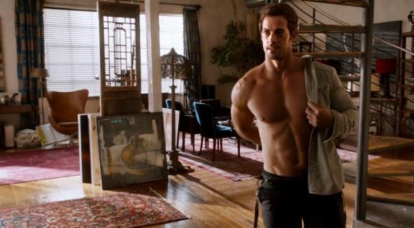 The following scenes actually show me that Zoe couldn’t hold down normal employment, let alone build a company from the ground up. We open with her initial trip to therapist Dr. Spencer (Tasha Smith) where we learn of how Zoe turned from normal unsatisfied housewife to true sex addict. Apparently twice nightly Boris wasn’t doin’ it for her, so she got involved with a multilayer cliché — artist Quinton Canosa (William Levy). Wait, I’m gonna count the clichés here: 1) he’s a artist, 2) vaguely foreign with a thick Latino accent 3) whose face is initially unknown to her despite the fact that this is her business 4) a client 5) a hunk 6) unattached 7) has a real date-rape-y come on, but it’s ok, because she “wants it” 8) lousy sense of h