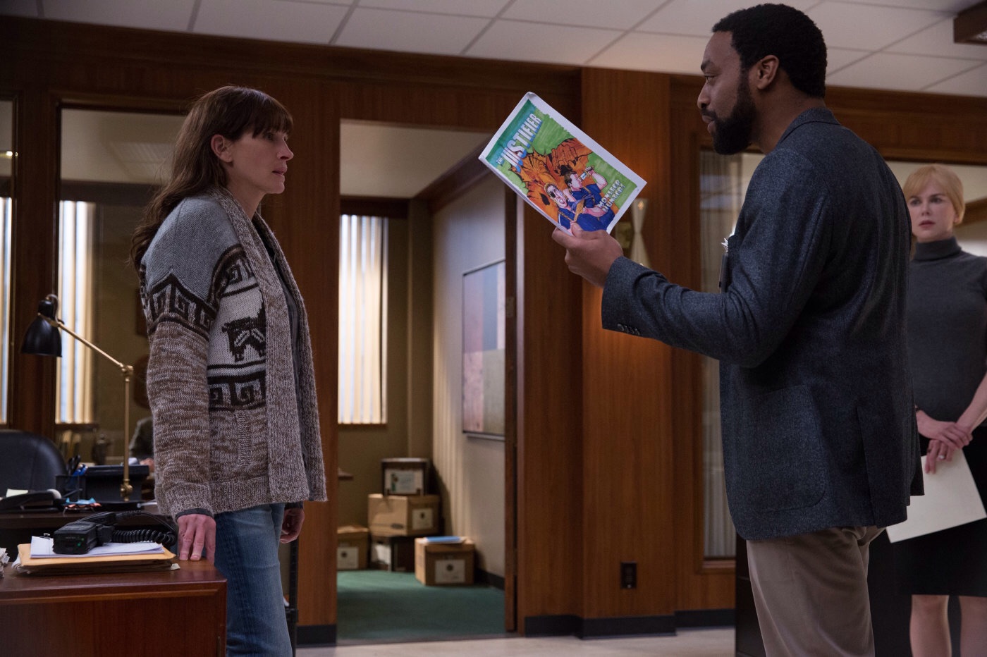 Ray (Chiwetel Ejiofor) has been scanning the national prison registry every night for thirteen years. I can’t tell if this is obsession or crappy police work. I’m going to go with the latter, but seriously, listen to the details – thirteen years ago, Ray, Jess (Julia Roberts) and Claire (Nicole Kidman) all worked L.A.P.D. Vice. Ray was actually employed by the F.B.I. and there on some sort of abuse exchange program, I guess. In the post 9/11 world, the focus on terrorism trumped all other concerns, which explains the F.B.I. loaning agents to El Lay. And when single mother Jess’ only daughter is found in a dumpster behind a mosque, the questions begin with religion rather than procedure.