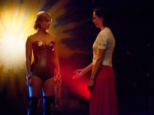 Professor Marston and the Wonder Women is not for the racy impaired. While no cinephile would mistake this film for porn, it ain’t exactly The Spongebob Movie, either. KnowwhatI’msayin’? And, you’re not gonna want to screen this thing for Uncle MAGA, either. It’s quite a Wonder when this film gets going. Have you ever pondered what people see in cosplay? Watch the scenes in which Olive transforms into Wonder Woman. Ditto for relationship trios; movies don’t tend to study said subject with any vigor or adoration.