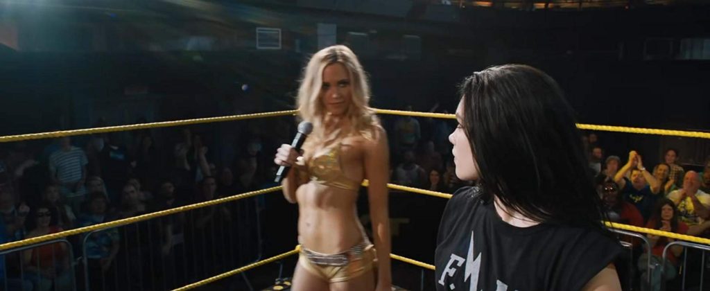 Professional wrestling isn’t real. It’s not exactly fake; these are precision athletes/actors; I could no more be a professional wrestler than I could work the pommel horse at the Olympics. Gymnastics is a good parallel because the gymnast is a similar type of athlete to pro wrestler — the dedicated precision performer, not the warrior. The outcome of professional wrestling matches is as predetermined as the outcome of Inspector Javert in Les Misérables. And in an effort to make this film into Rocky, Fighting with My Family had to sell us on a number of scores that ring hollow. Saraya gets to the wrestling bus leagues if you will, and she sucks – never mind that Florence Pugh is too small to be a pro rassler; she just isn’t as good or as polished as her peers. It’s incredibly frustrating seeing “Paige” stammer at the camera, get shown up by her co-workers, and then see her get a shot at the title as a reward. It’s like watching somebody go from JV college gymnast to getting a shot at a gold medal without even the benefit of “I’m suddenly better than everybody” montage. (This montage does exist, but it shows merely that “Paige” is now fitting in; there’s nothing among the too-little-too-late suggesting “Paige” is the one deserving of a promotion to the bigs ahead of her peers.)