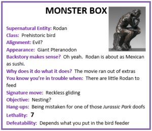 I didn’t quite bank on the joy of many, many monsters until I realized, “Oh good, now there’s an undercard for the big Boston throwdown.” Hey, if they can have hockey outdoors at Fenway, they can certainly have WWF, pun definitely intended. “Live from Fenway Park, it’s the monsters of … monsters, see the bleachers explode with fury as avian legend Rodan powers through like a Mothra to flame. And then, the big match up … you don’t want to miss the battle of battles: Godzilla vs. Monster Zero. Never since Alien vs. Predator has an audience been this replete with amazement and ennui.”