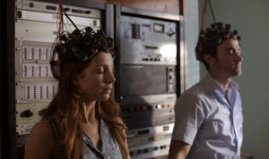Clearly, The Infinite Man was written by a scientist. Do you know how I can tell? The science? HA! The gadgetry? Double HA! The “time machine” consists of two tricked-out bathing caps and some equipment that got left by the side of the road. The technical stuff? The script? The Hero? No, no, and not necessarily. I can tell this film was written by a scientist because of the painstaking need to close the time loops. Only a scientist would truly care this much that every conversation were explained from both points of view. For a film with only three people and one set, it is very easy to get lost among The Infinite Man paradigms; the loops became my only way of finding the path back to sanity.