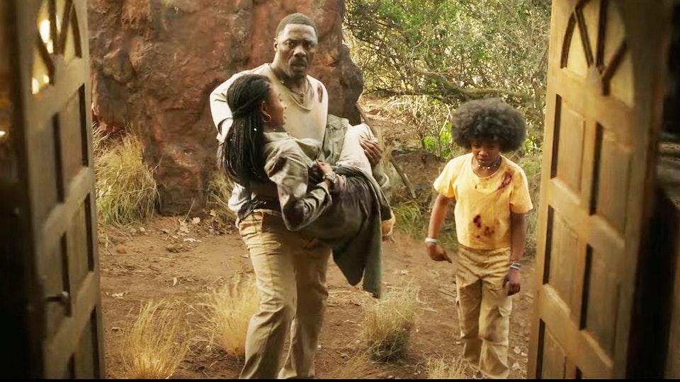 Meanwhile, in another film, Dr. Nate Samuels (Idris Elba) has decided to take the fam on vacay. And his fam is down to Idris and two daughters; his estranged wife died of cancer, a fact the film needed to impress upon us every five minutes in case we forgot. This fact is oft accompanied by dismissing or scornful behavior by the older daughter towards dad, something I never tire of seeing on film.