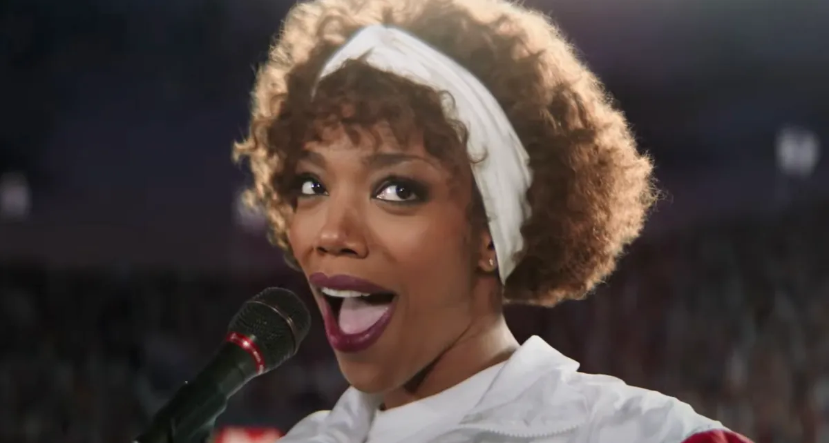 In case you didn’t know (and I didn’t before her death), Whitney Houston (Naomi Ackie) had a mother in r&b recording artist Cissy Houston, an aunt in Dionne Warwick, and a godmother Aretha Franklin. And none of those women meant squat to her, apparently. Shame, because every one of them could have given her some good tips on handling fame. While Cissy (Tamara Tunie) doesn’t come off well in the picture, the movie credits her with recognizing a talent scout at her usual gig and pretending to be ill to force Whitney into the spotlight. Whitney begins the show with “Greatest Love of All” which baffled me because why would you start any show anywhere at any time with that number? But it’s Whitney, so five minutes later, she had a record contract.