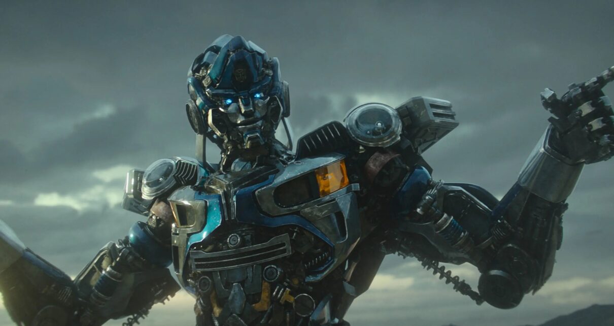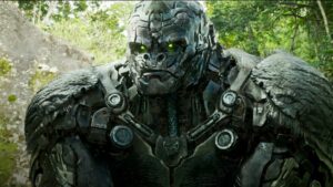 I tell you this much; research is not big in the Transformers world. This is evidenced immediately on screen when the film shows us “primals.” Do keep in mind in Transformers: Rise of the Beasts, there is an Optimus Prime (Peter Cullen) and Optimus Primal (Ron Perlman). The former looks like a red building; the latter looks like a mechanical gorilla. Ok, so I see the mechanical gorilla and the mechanical rhino, so this mini pre-battle must be taking place in Africa, yes?