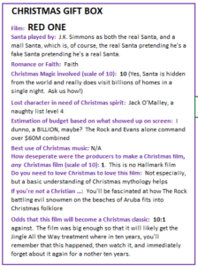 Type of being least likely to enjoy this film: If you don’t believe in Santa Claus, this ain’t helpin’