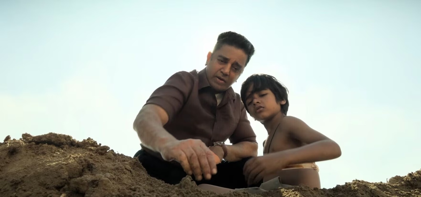 There’s a street war in Delhi, 1994. In the crossfire, two children become orphans immediately. The elder one, Amaran (Silambarasan TR as an adult; but at this poi t int he narrative, he’s a child played by -as far as I can tell- nobody), becomes a shield for gang lord Sakthivel (Kamal Haasan, who also co-wrote the film). In the aftermath, Sakthivel makes Amaran his apprentice thug, yet after hearing the child’s POV, vows to find Amaran’s sister no matter what it takes.