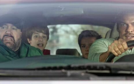 In the world’s most stupid ritual, Jamie (Aaron Taylor-Johnson) – and, believe me, Jamie, this move does not Kick Ass – has agreed to take his 12-year-old son Spike (Alfie Williams) across the isthmus for a coming-of-age hunting ritual among the zombies. Is the kid supposed to hunt the zombies?! Did I mention this is stupid? Hoo-boy, is this ever stupid. But, we do learn a few things like 1) There is an alpha rager,