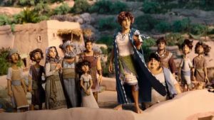 David (voices of Brandon Engman and Phil Wickham) was a shepherd boy of noble heart living at a time and place in which nobody was white but tell that to the animators. They tried. They really, really tried. After protecting his flock from a lion and then singing about it, David gets called into a -for lack of a better word- conference in which Prophet Samuel fingers him as the next king of their tribe. [If this is how kings are decided, are they really the king?  Never mind.]  TBH, this particular fingering is better than most of the fingering that has gone on among Christian leaders in our era.