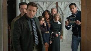 This is the guy who dies. And there’s no mystery as to why; he’s a big jerk. Whether it’s running down potential new parishioners from the pulpit or deliberately mentioning how often he masturbates when giving his own confession to Father Jud, Monsignor Wicks is burning down to the, well, you know. And it’s only a matter of time before his expiration date elapses. And in this case, it’s a doozy – he face plants with a knife wound in a dead-end closet stage left during a “full” mass. All the suspects are present and accounted for. I won’t go into them, but this is a loaded cast. After O’Connor, the possibles include Glenn Close, Kerry Washington, Andrew Scott, Jeremy Renner, Cailee Spaeny, and Thomas Haden Church. And every single one of these guys has an alibi for they were all looking at one another at the time of the murder off-stage.